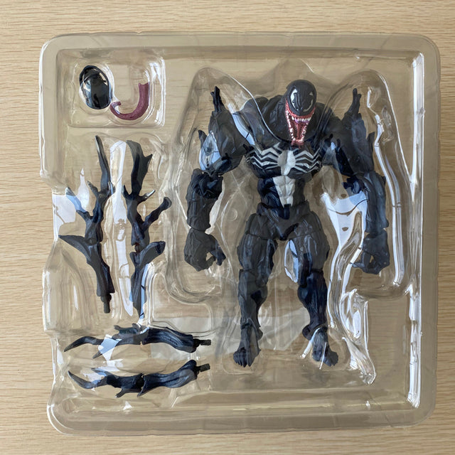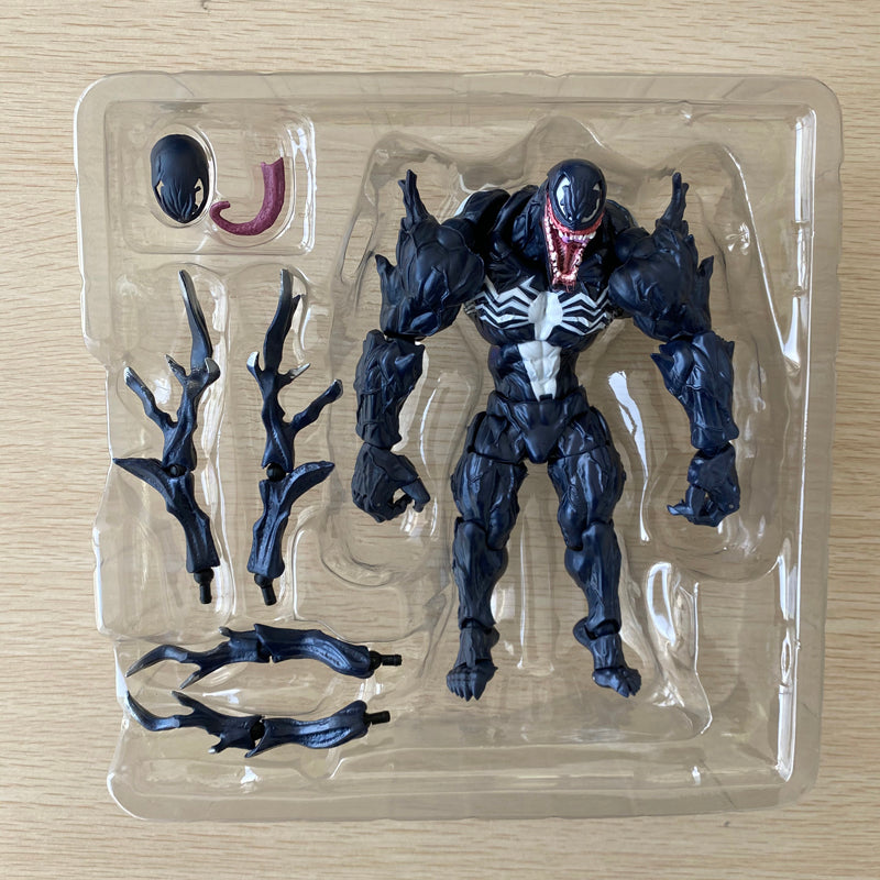 Introducing the Marvel Venom Action Figure Eddie Brock Model Toy! This figure is awesomely detailed and poseable, making it a great addition to any Venom fan's collection. Standing at 6 inches tall, this figure features Eddie Brock in his iconic black suit with white Spider-Man symbol. Venom is ready to protect and serve justice, thanks to his 16 points of articulation. And because no Venom figure would be complete without his long, sharp teeth, this figure also includes a detachable lower jaw that can be inserted for a truly menacing look. Whether you're looking to start or expand your Venom collection, this figure is a must-have!