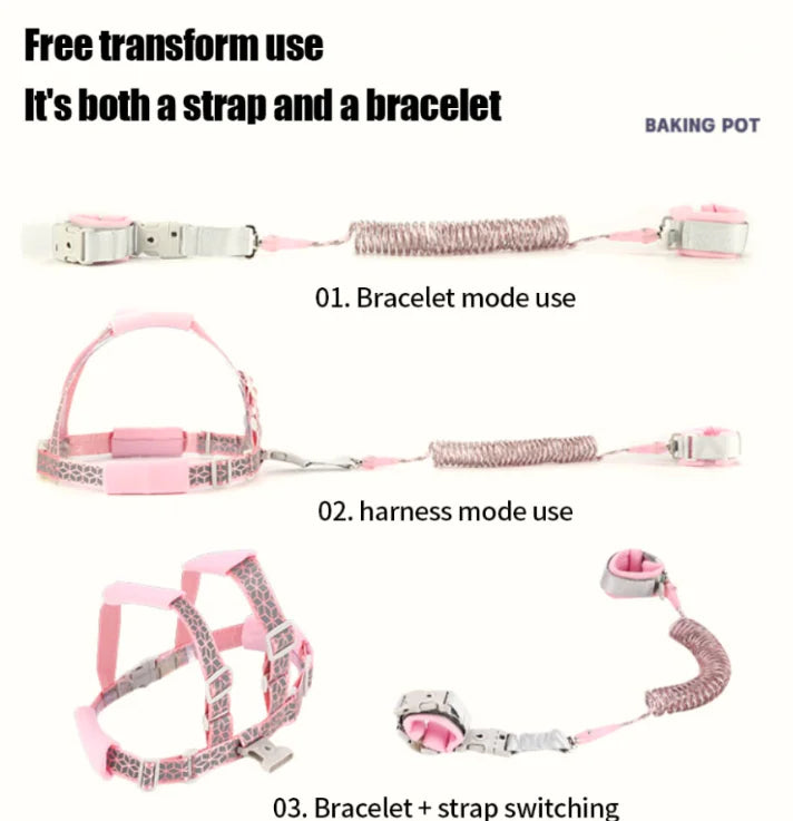 Introducing our brand new 2-in-1 Baby Leash – a delightful combination of fun and safety for your adventurous toddlers! Crafted with high-quality materials, this Anti-Lost Wristband is designed for children aged 2 to 5 years old, ensuring a secure and enjoyable experience for both parents and little ones.
