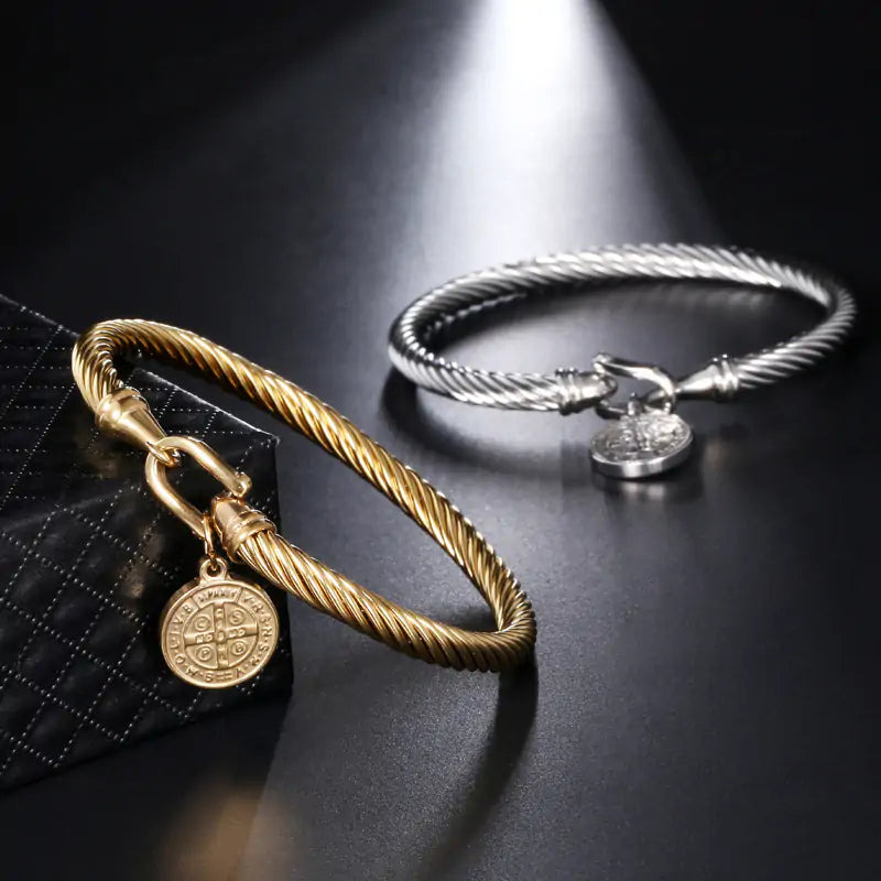 For those looking for beautiful, unique jewelry that signifies faith, look no further than our Saint Benedict Medal Charm Bracelets. Crafted with exquisite attention to detail, these bracelet bangles are a timeless accessory your customers will love. Made from 316L stainless steel and gold color plating, these Saint Benedict bangles are made to last without ever losing their original shine. With the classic ‘San benito’ design featuring a traditional cross detail, this stunning jewelry is sure to be treasured for years to come. Show off your faith in style with these gorgeous bracelets, perfect as gifts or just to add some pizzazz to any outfit.