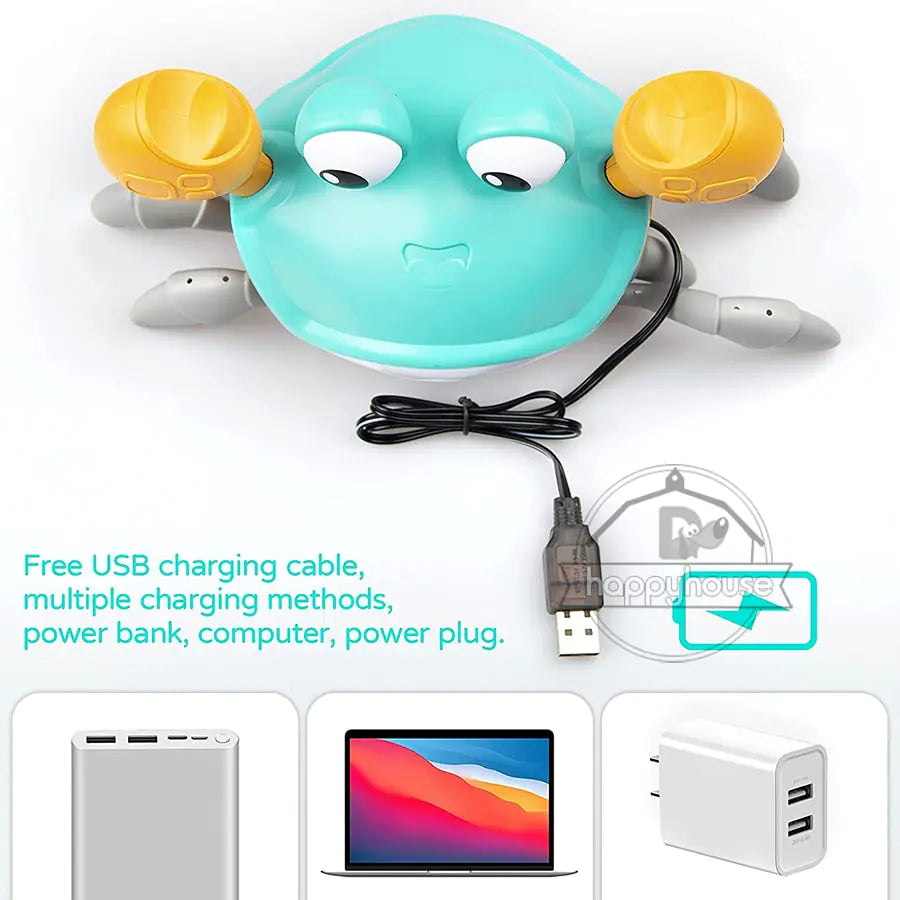 Introducing Sea Creature Musical Baby Toys! These interactive toys provide endless fun and will bring your child's imagination to life. With Super value LED lights and sensor obstacles avoidance functions, the crawling crab toy moves realistically and will automatically change directions if it encounters an obstacle while moving. Powered by a 3.7V lithium battery, this musical crab toy runs for up to 20-30 minutes after 2 hours of charging with the USB charge cable included in the package. Moreover, this product is crafted from non-toxic ABS material with smooth edges, making it perfectly safe and suitable for babies, toddlers, kids and even adults. Lastly, it serves as an excellent gift item for any age group over 3 years old and is sure to inspire creativity and imagination in children! Get your own Sea Creature Musical Baby Toy today—your little ones won't be able to take their eyes off of it!