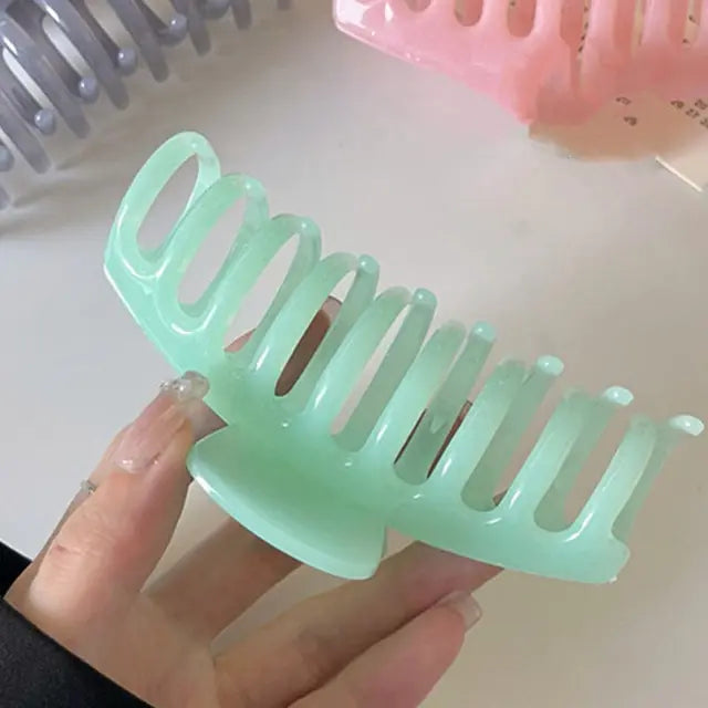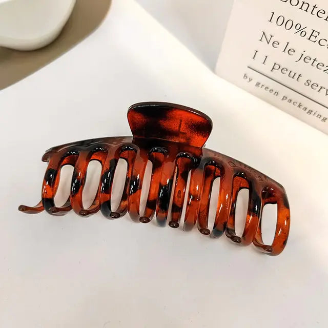 Introducing the AOMU Sweet Scrub Color Acrylic Grasp Clip Simple Oval Hollow Leopard Grasp Hair Crab: the perfect way to add a touch of sophistication and flair to any look. This premium hair accessory is both efficient and stylish, crafted from high-quality glossy acrylic that ensures lasting wear without compromising on beauty or comfort. Featuring a simple oval design with unique leopard print accents, this claw clip will keep your hair looking chic and put together all day long. Plus, with its vibrant colors and scrub finish, it’s sure to add an extra pop of personality to any style! Whether you’re dressing up for a special occasion or just want a bit of everyday luxury, this grasping hair crab is the perfect addition to your collection.