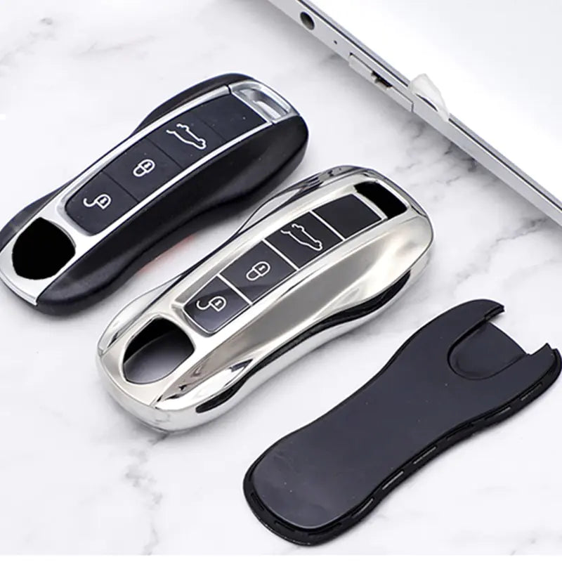 The TPU Car Smart Key Case is the perfect accessory for Porsche Panamera Cayenne 971 911 9YA Macan Boxster owners. This styish holder and cover provides the ultimate protection for you car keys. It's made of durable, soft-touch Thermoplastic Polyurethane (TPU) material which is resistant to oils, grease, and dust so it's sure to keep your key safe from any dirt or scratches. The TPU Construction makes this stylish case lightweight and easy to carry around in your pocket or bag without adding extra bulk. It also features a secure latch that keeps your keys snugly in place when not in use. The Key Case Holder comes with an optional keychain so you can clip it on easily wherever you want. This high-quality product is carefully crafted to bring you maximum convenience and protect your keys like never before. Get the TPU Car Smart Key Case today – durability and style all rolled into one!