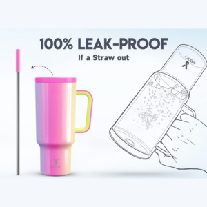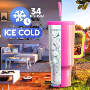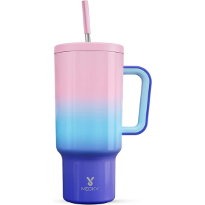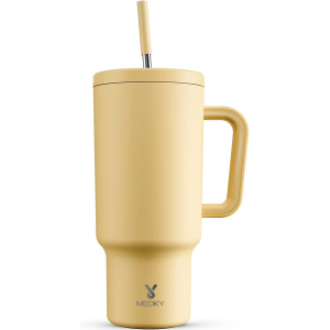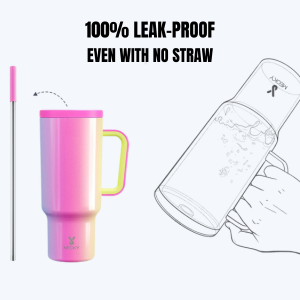 Introducing Meoky's 40oz Tumbler with Handle, the ultimate travel companion for beverage enthusiasts on the move. Crafted from premium insulated stainless steel, it keeps your drinks refreshingly cold for up to an impressive 34 hours or piping hot for a satisfying 10 hours, ensuring every sip is at the perfect temperature. Say goodbye to spills with its innovative leak-proof lid and convenient straw, offering hassle-free sipping on the go while keeping your bag and belongings safe. The built-in handle adds easy portability, making it a seamless choice for daily commutes or outdoor adventures. Crafted for durability and taste preservation, this tumbler caters to coffee lovers, tea enthusiasts, and anyone in need of a reliable hydration solution, making it the ideal companion for any occasion.