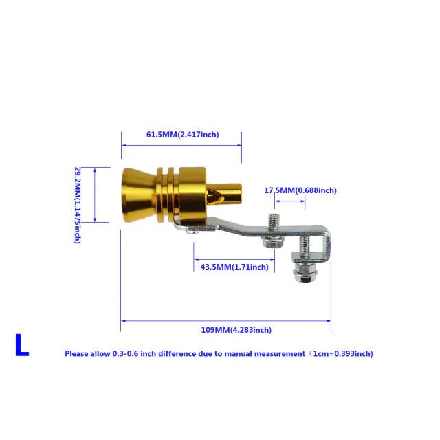 Looking to give your vehicle that unique Turbo sound? Look no further, than the Turbo Exhaust Whistler. This brand new universal simulator will have your car sounding like a turbo car in no time!Turbo cars are known for their aggressive sound, and now you can have that too! Made from lightweight materials, this exhaust whistle is easy to install and won't break the bank. It's the perfect way to show off your personal style and make your car stand out from the rest. So don't wait any longer, get your Turbo Exhaust Whistler today!