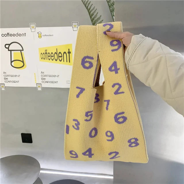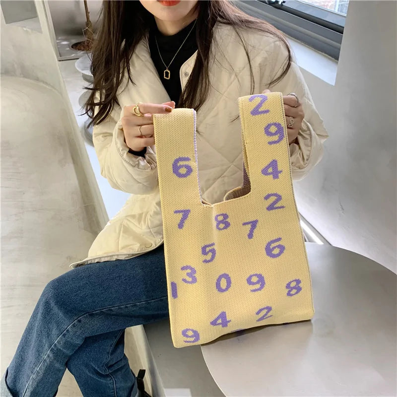 This stylish tote is perfect for carrying your essentials around town. Made of soft woolen cloth, it's easy to carry and looks great with any outfit. The unique design and colorful numbers make this a must-have piece for any fashion-savvy woman.